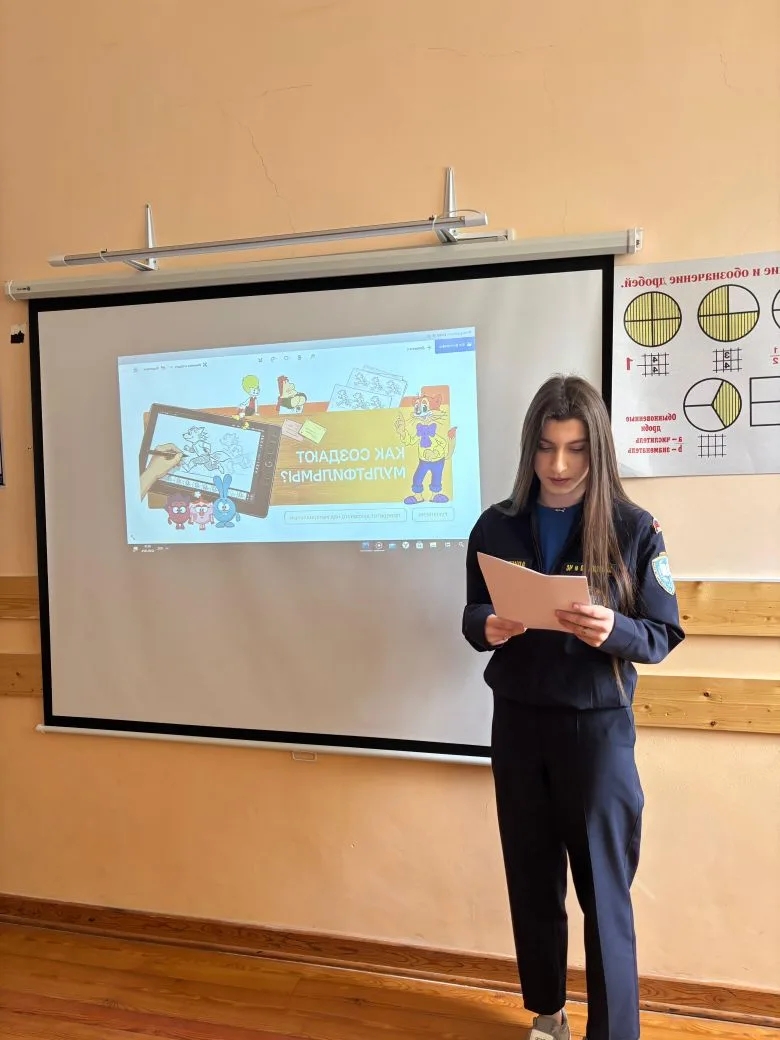 12 января в ЧПОУ "Колледж ГО и ЧС" после церемониии выноса знамени РФ и исполнения гимна РФ прошло внеурочное занятие «Разговоры о важном». Сегодняшнее занятие было посвящено роли анимации в культуре и развитии технологий. Со студентами обсудили как современные методы преобразуют анимацию, но также подчеркнули ценность творческого подхода и наследия великих российских аниматоров.